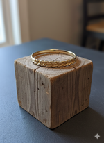 Elevate your wrist with this timeless Trifari gold-tone bangle bracelet, featuring an elegant leaf motif that captures nature's grace. Crafted with meticulous attention to detail, this piece combines vintage-inspired design with a lustrous gold finish...