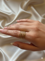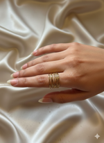 Make a confident statement with this multilayer chunky ring, where bold design meets refined craftsmanship. The stacked band construction creates an architectural aesthetic that works beautifully on its own or layered with other pieces. Its...